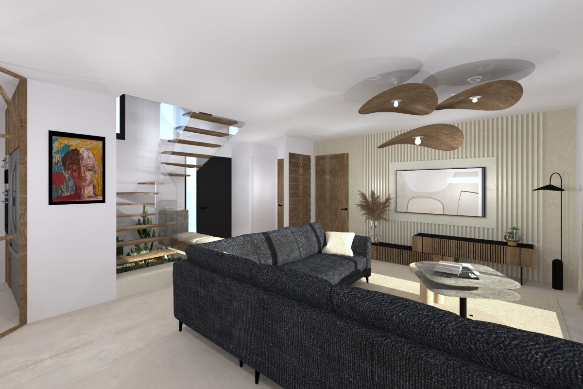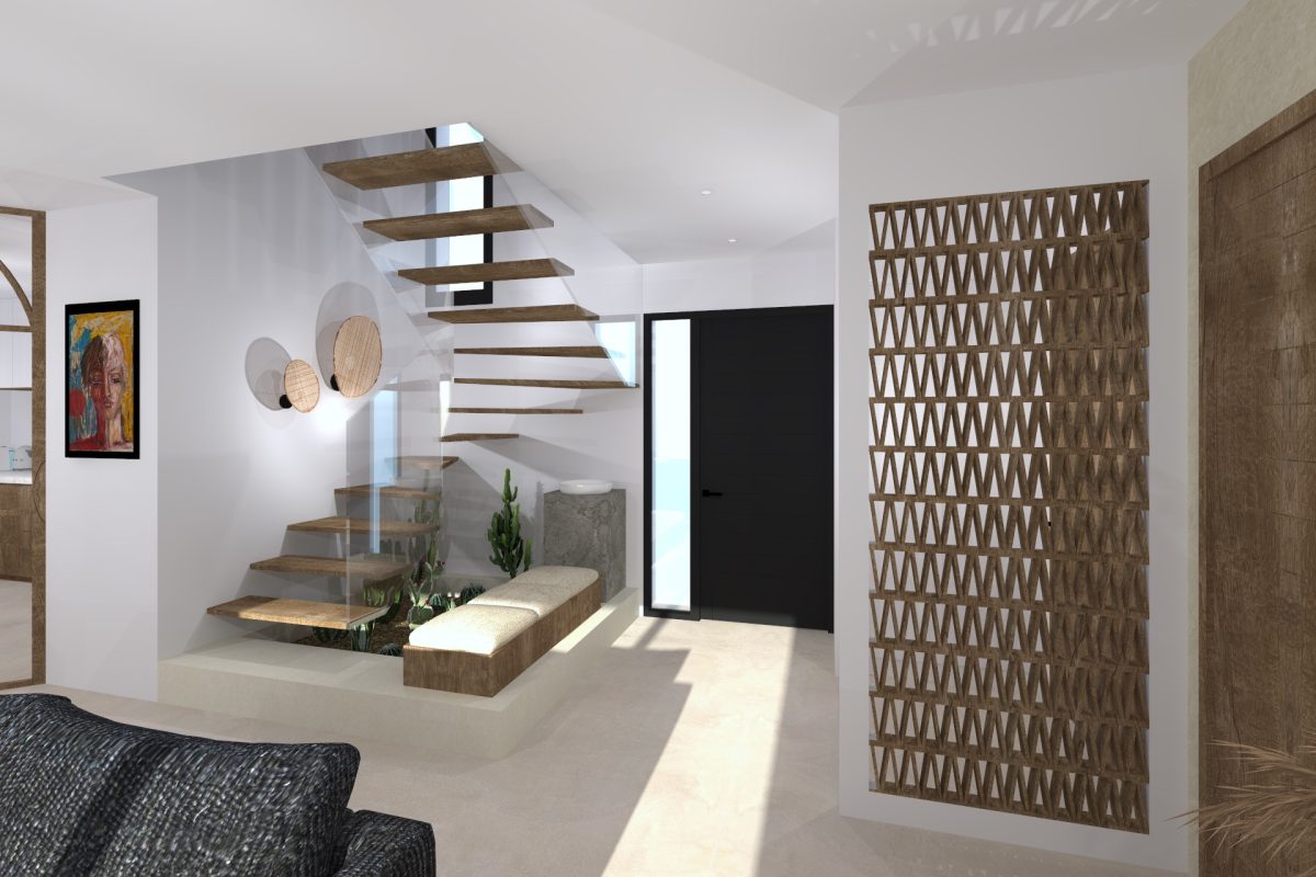 Travail d’architecture intérieure et décoration pour une maison en construction à Montanay.